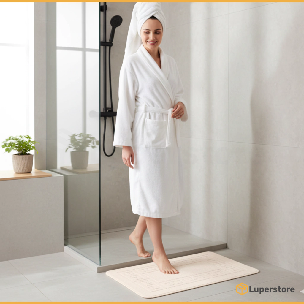 • Material: fibra de polipropileno• Medida: largo 60 cm / ancho 40 cm / alto 1 cm• Color: crudo• Base antideslizante de TPR• Calidad: 1350 g / M²• Peso: 360 g