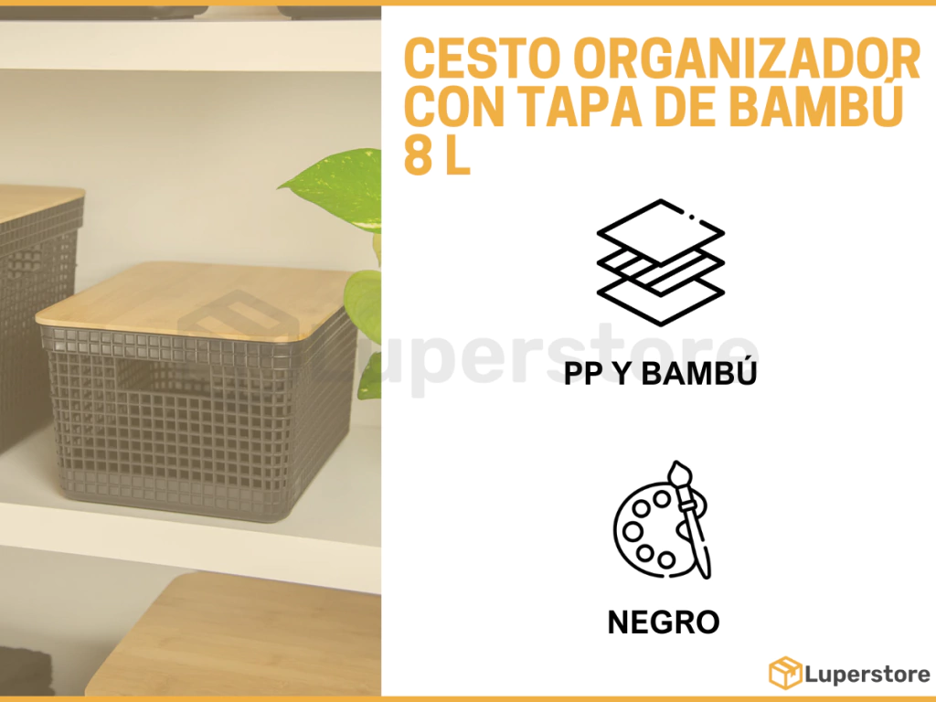 ORGANIZADOR C/ TAPA BAMBÚ 20 L NEGRO