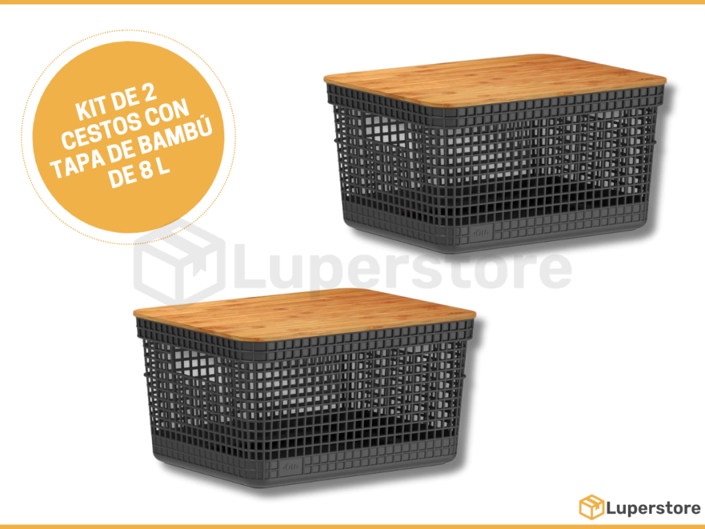 ORGANIZADOR C/ TAPA BAMBÚ 20 L NEGRO