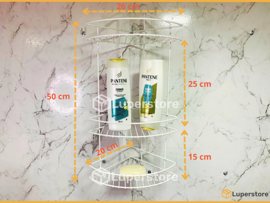 • Medidas: largo 26 cm / profundidad 20 cm / alto 50 cm• Distancia entre estantes:--- 25 cm entre el superior y el del medio--- 15 cm entre el del medio y el inferior• Color: blanco• Material: acero pintado con epoxi