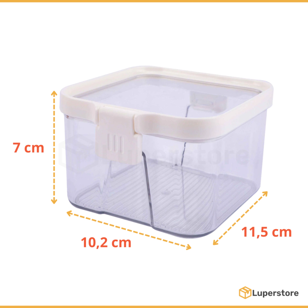 • Medidas: largo 11,5 cm / ancho 10,2 cm / alto 7 cm• Capacidad: 420 ml• Material: PET, PP, ABS y silicona• Color: Transparente con tapa blanca
