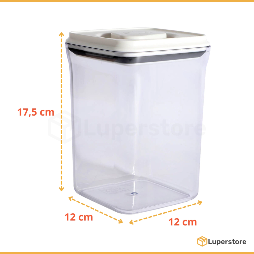 • Material: AS, PS y silicona• Medidas: ancho: 12 cm / largo 12 cm / alto 17,5 cm• Capacidad: 1300 ml