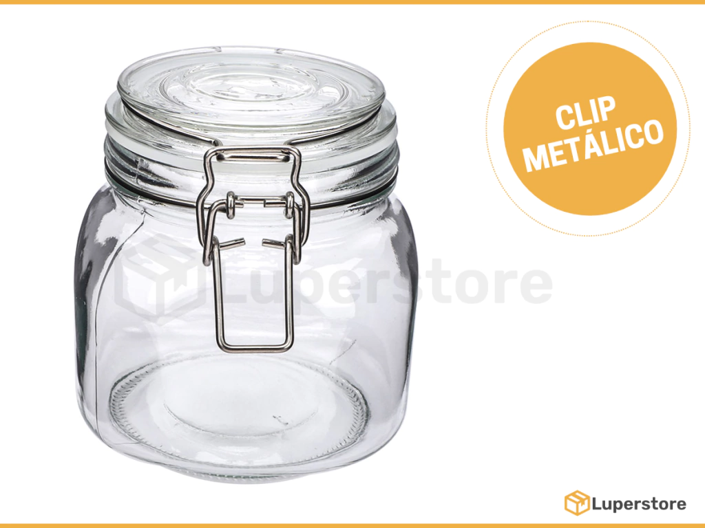 FRASCO DE VIDRIO HERMÉTICO CLIP METÁLICO X 4U.