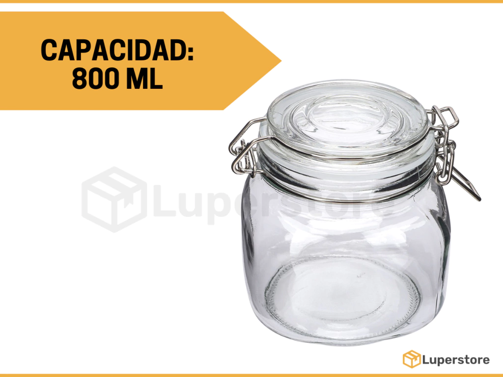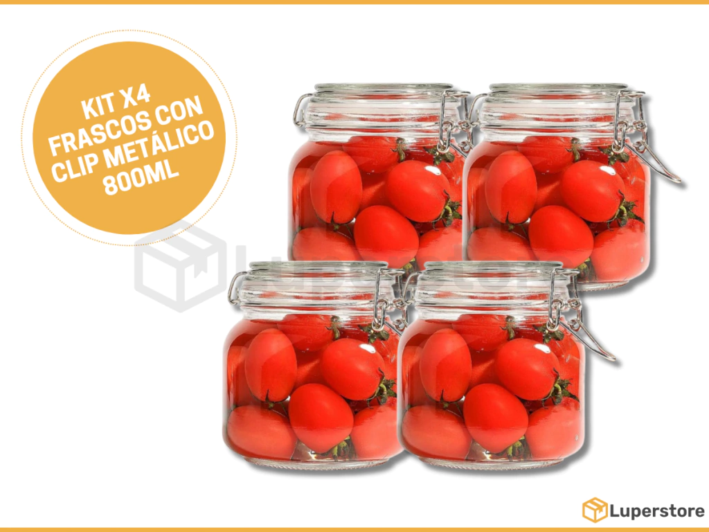 FRASCO VIDRIO CLIP METAL 800 ML X 4U.